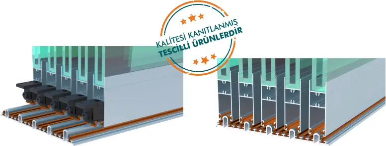 BKS Lüx Sürgülü Sistemde Kullanılan Kasa Profili (Ray Profili), 3'lü ve 5'li Ray Seçeneklerimiz Mevcuttur. Yapılan Yük Taşıma Testleri Sonucunda Her Bir Paneldeki Çift Teker Sayesinde Ray Üzerinde Dengeli Gidecek Şekilde Dizayn Edilmiş Ve Üretilmiştir.